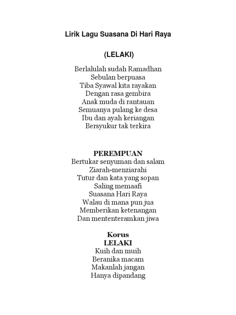 Peninggalan nenek zaman berzaman. Berikut ini lirik dan chord lagu Suasana di Hari Raya dari Anuar Ellina. Lirik Lagu Hari Raya Ini Dalam Sejarah Monoloque.
